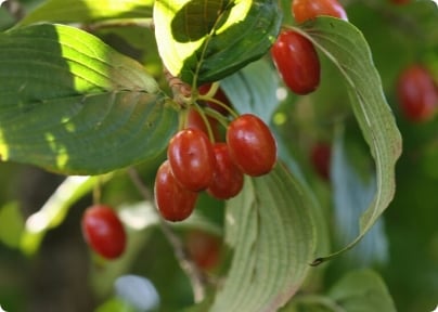 真っ赤なグミに似た果実で、種を除き、果肉を乾かしたものです。健康維持に良いとされる山茱萸酒はよく知られています。